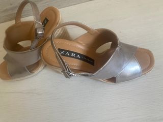 Sandalias de cuña con un diseño brillante. - Color plata. - Talla 37. - Cierre de hebilla. - Suela de esparto. Pregunta sin problema, precio negociable