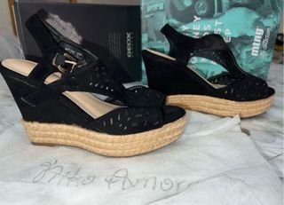 Chanclas cuña puestas unicamente una vez, fue un regalo pero no es mi talla. Altura de la cuña 8cm, altura de la parte frontal de la suela 2.5 cm