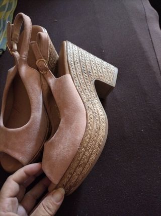 Sandalias con velcro y un poquito cuña. En tonos beis. Sólo un uso porque no es la talla
