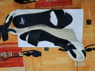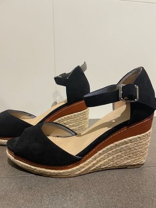 sandalias cuñas con tacon y hebilla. talla 37. apenas usadas, se venden por pequeñas.