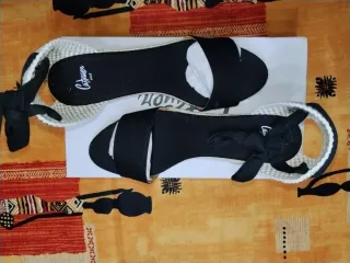 Preciosas sandalias de cuña de la marca BIMBA Y LOLA. Son de color azul marino y negro, y tienen un diseño elegante y veraniego. Ideales para cualquier ocasión. - Confeccionadas con materiales de alta calidad. - Diseño de cuña cómodo y estable. - Perfectas para el verano. -Los zapatos calvin klein estan perfectos son talla 36 .En la suela le puse esa suela que se puede quitar para que mo resvale. El precio son 50€