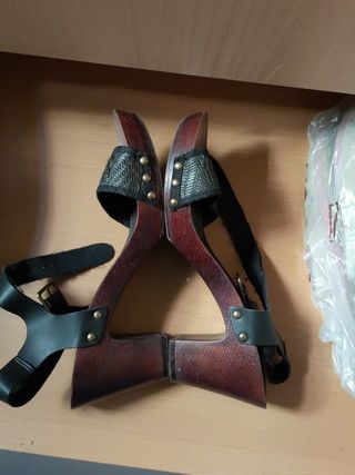 zapatos tacón grueso de 5 dedos de alto. usados 2 veces. talla 39.