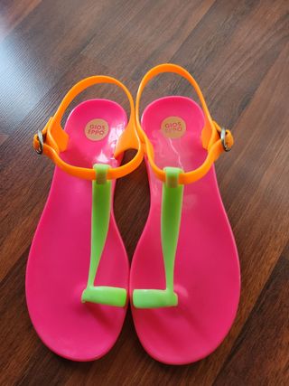 Sandalias de goma en colores flúor de la talla 36. Están nuevas, en perfecto estado.