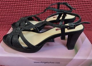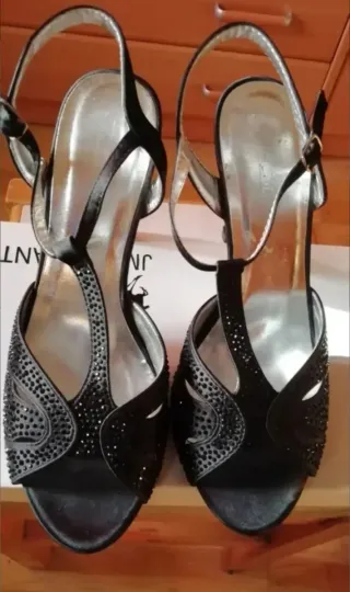 Sandalias negras de fiesta con pedrería, nº 38. Marca D´Angela.