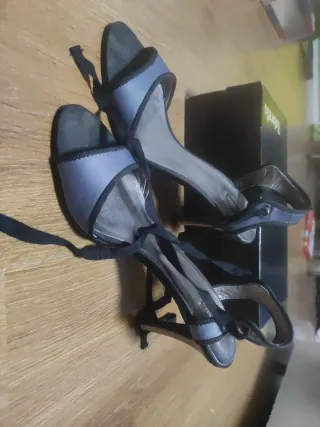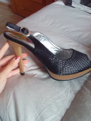 Tacones tipo sandalia con cinta de brillo - Talla 37 # Vendo unos tacones tipo sandalia talla 37, con una cinta de brillo que les da un toque elegante y llamativo. Son perfectos para eventos, fiestas o cualquier look que necesite un detalle especial. • Estilo: Sandalia de tacón • Talla: 37 Detalles: Cinta con brillo • Estado: (Podés decir como nuevos, usados una vez o bien cuidados) Color: (Si querés, me decís el color y lo agrego) • Ideal para: Fiestas, bodas, cenas y ocasiones especiales Tacones elegantes, femeninos y con un detalle brillante que resalta.