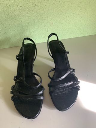 Se venden varios pares de sandalias en muy buen estado, algunas prácticamente nuevas, por falta de uso. El precio de cada par se detalla más abajo. Los 4 pares por 30 euros. Rojas:puestas en contadas ocasiones para eventos. 10 euros Verdes:casi nuevas, comodisimas, de piel muy dulce. 15 euros Marrones de cuña: preciosas, casi nuevas. 15 euros Negras bajitas: son las más usadas de todas pero están en perfecto estado. Muy cómodas. 5 euros