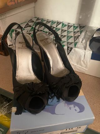 Zapatos/ sandalia con plataforma negros de fiesta muy elegantes de raso. T. 38 . Solo puesto una vez. Hechos en España de MayFran