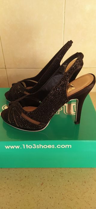 Sandalias de tacón para eventos de pedrería y color negro. Solo utilizadas una vez. Talla 36 y marca ito 3.