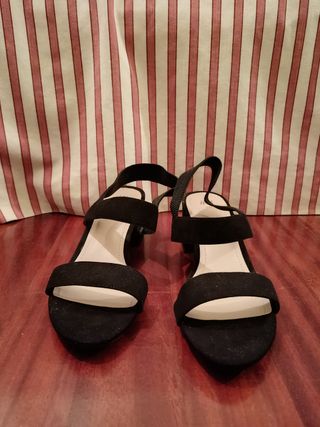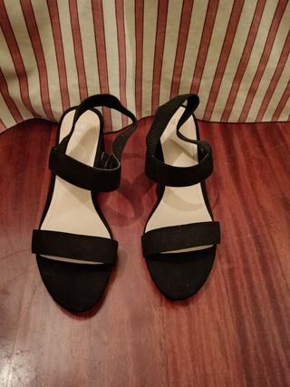 Sandalias negras de tacón. T. 40