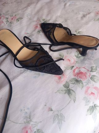 Preciosos tacones para fiesta. Se han usado dos veces, están impolutos y son muy bonitos. Tienen un detalle de una flor que los hace muy elegantes.