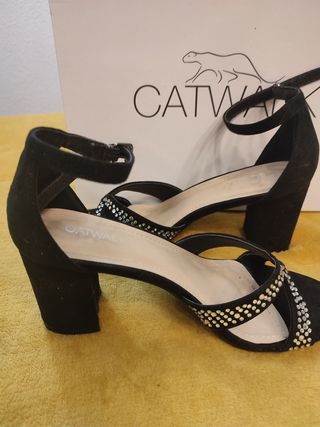 Sandalias negras fiesta,tacon