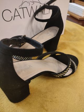 Sandalias tacón 37 negro/ brillos