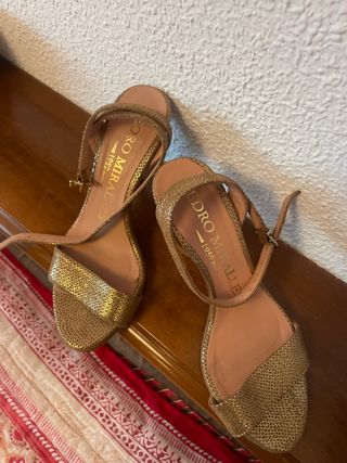 Sandalias de fiesta doradas.