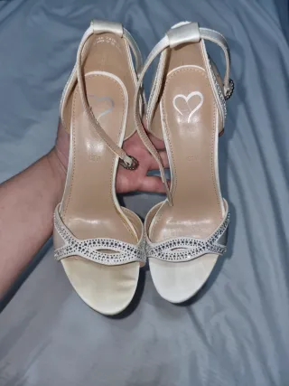 Sandalias beige para fiesta. Usadas para dos bodas. Son de Shein. Pone que talla 36, pero yo soy 37,5 y regresé unas de talla 37 porque me quedaban grandes. Creo que valdrían también para un 38 porque a mí me sobra algo de espacio.