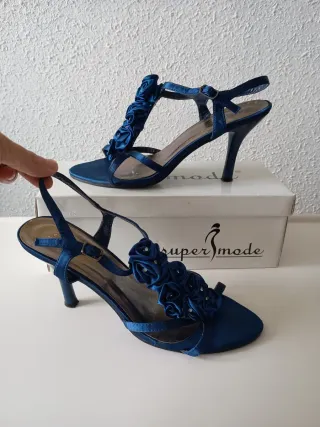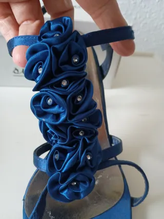 Sandalias fiesta Azul Flores Tacón aguja N37
