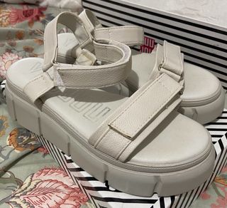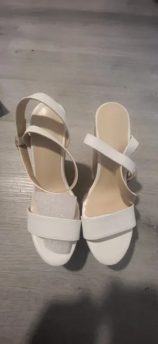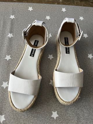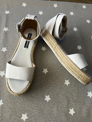 Sandalias de plataforma blancas. Talla 38. Tiras ajustables con velcro. Usadas unas pocas veces, la suela por debajo está algo sucia del uso. Se envía con su caja original.