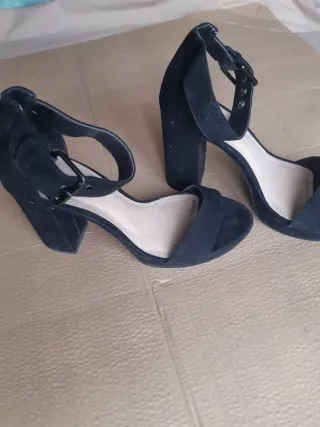 Preciosos zapatos de tacón tipo sandalia en color negro. Muy nuevos y cuidados. Sin apenas uso. Mira las suelas. Perfecto estado. Color negro de piel tipo terciopelo. Ideales para cualquier celebración o evento. Combinan con todo! Marca PULL & BEAR. Talla 36. Piel en plantilla, empeine y exterior. Tacón ancho 10 cm. Con un poco de plataforma. Cierre al tobillo, con un poco de elástico. Ver fotos. Más si se desea. Pregunta sin compromiso. Consulta envío económico. Se venden muy por debajo de su compra. Otros artículos en moda y complementos de marca en mi perfil. A más compra, mejor precio. Para ver más moda copia: ZAPATOS BRT