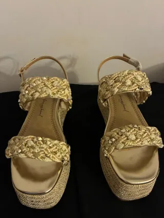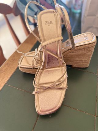 Sandalias ZARA doradas cuña esparto