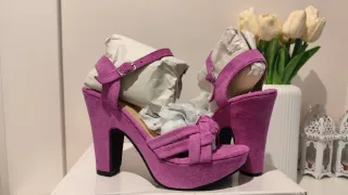 Preciosos tacones de plataforma de la marca. Solo los he usado una vez paga una ocasión especial. Daniela Vega, color fucsia. Son muy cómodos y solo se han usado una vez. - Tacón grueso para mayor estabilidad. - Diseño de plataforma. - Material tipo ante.