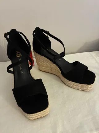 Sandalias cuña negras con esparto