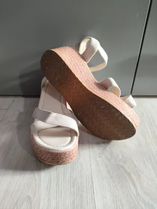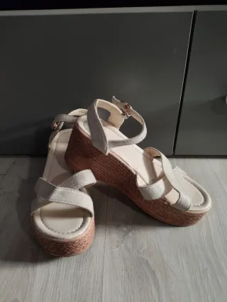 Sandalias de cuña con un diseño elegante, cómodo y confortables. Casi sin uso. - Tiras cruzadas en la parte delantera. - Cierre de hebilla en el tobillo. - Suela de cuña con plataforma.