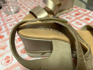 Sandalias de piel en color dorado de la marca Fluchos. - Diseño elegante y cómodo. - Tira ajustable en el empeine. - Suela con plataforma.