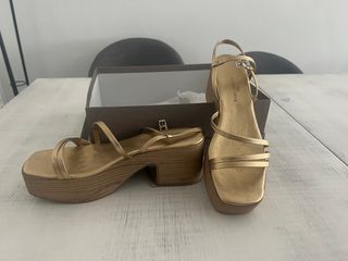 Sandalias doradas con plataforma de Zara, número 40.
