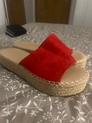 Sandalias cuña esparto piel rojas talla 36