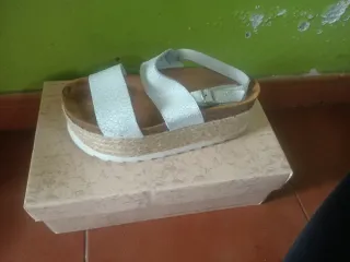 Sandalias cuña plateadas Parronet talla 37