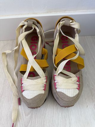 Sandalias de plataforma Gioseppo en talla 37. Explicadas en la ultima foto - Diseño cruzado en la pala. - Tiras ajustables con velcro. - Suela de esparto y goma.