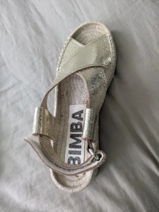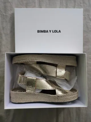 Sandalias de la marca Bimba y Lola. - Diseño con tiras. - Plataforma de esparto. Precio original 135€. Sin estrenar. Se envían con la caja de Bimba y Lola