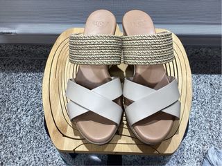 Preciosas sandalias de cuña en color beige. Ideales para verano. Como nuevas. Muy cómodas , tejido muy suave. - Tienen una plataforma de esparto. - El cierre es con hebilla en el tobillo. - Son talla 38.