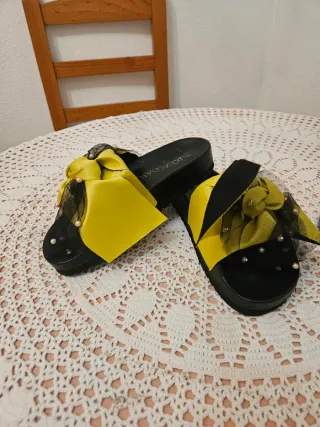 Preciosas menorquinas en color negro y marrón, talla 36. Ideales para el verano. - Son de plataforma. - El material parece de buena calidad. - Están en muy buen estado.