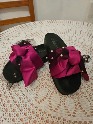 2 PARES de Sandalias de plataforma con lazo rosa.