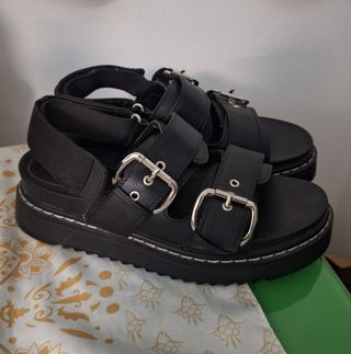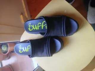 Sandalias de plataforma de la marca Buffalo. Pone 41 pero calza 42. Lss he comprado, me encantan, son cómodas pero me quedan muy grandes.