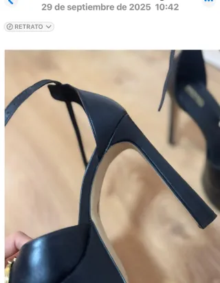 👠 Tipo: sandalias de tacón alto con plataforma 🏷️ Marca: Un Paso Más 📏 Talla: 41 🎨 Color: negro 🧵 Material: ante / suede 🔒 Cierre: hebilla ajustable en el tobillo 👡 Diseño: tiras cruzadas + punta abierta (muy favorecedoras) 🧼 Estado: buen estado, cuidadas 👣 Suela: poco desgastada (como se ve en las fotos) 💌 Medidas: si quieres medidas exactas, escríbeme sin problema 😊 🚚 Envíos: hago envíos rápidos 📦⚡ #sandalias #tacon #plataforma #ante #suede #negro #totalblack #fiesta #evento #lo