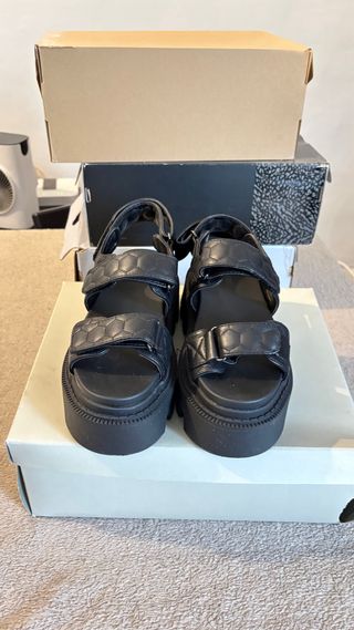 Sandalias de plataforma con un diseño moderno y cómodo. Nuevos - Tiras ajustables con velcro. - Suela gruesa y antideslizante. - Detalle acolchado en las tiras.