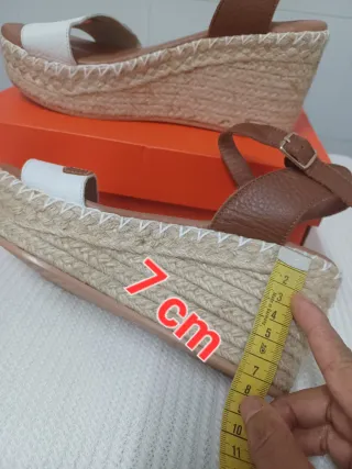 Sandalias con plataforma con un diseño de rayas multicolor. - Talla 37 - Tira superior de cuerda trenzada. - Suela de esparto. - Detalle de costuras en el borde. - A mi novia no le gustaron, como nada de lo que le regalo.