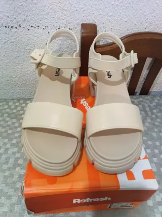 Sandalias de la marca Refresh de plataforma , nuevas sin estrenar. - Talla 40, mida 25cm - Correa ajustable al tobillo con hebilla. - Suela gruesa con relieve.