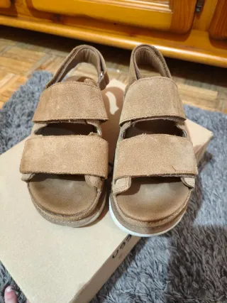 Sandalias de la marca UGG en color marrón. Perfectas para el día a día. - Diseño con tiras ajustables de velcro. - Suela plataforma, cómoda y ligera. - usadas en contadas ocasiones. - Desgaste pequeño en la puntera y el talon