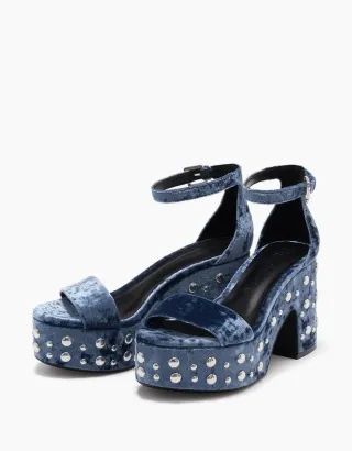 Sandalias de Bershka - Material de terciopelo. - Adornadas con tachuelas plateadas. - Plataforma gruesa y tacón cuadrado.