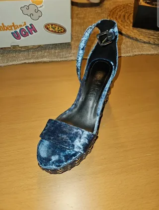 Sandalias Bershka Velvet Tachuelas Azul Talla 38
