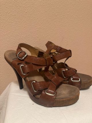 Sandalias de tacón de piel marrón.