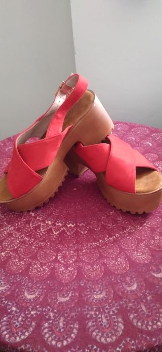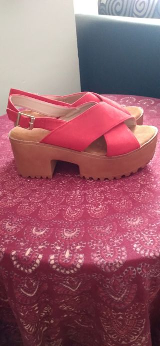 sandalias rojas con plataformas no pesa nada cómoda. Una sola puesta para una comunión.