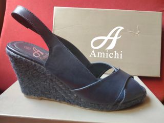 Sandalias de cuñas, nunca usadas, nuevas sin estrenar. Cuña mide 9'50cm y lleva un pelín plataforma para ayudar en la pisada y comodidad. Se puede ver en las fotos. Color azul marino Marca Amichi, las compré por 40€, se puede ver en la etiqueta y las vendo por mucho menos de la mitad.