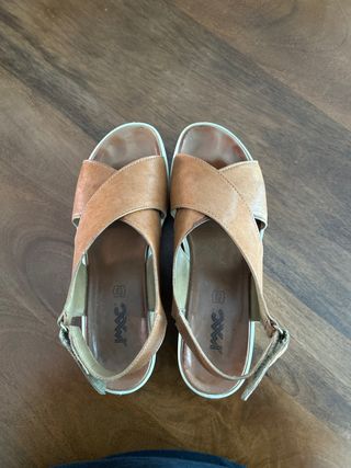 Sandalias de cuña con plataforma y tiras. - Diseño abierto. - Cierre de hebilla. - Plataforma gruesa. 5 euros cada una