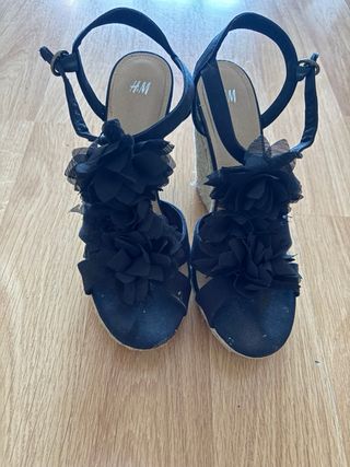 Sandalias H&M Plataforma Esparto Talla 38 Flores