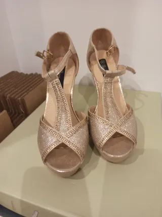 Sandalias plataforma, puestas dos veces, como nuevas, sientan genial y son muy bonitas pero tienen demasiadas plataforma para mí que no suelo usar, a quien le guste la plataforma estará encantada, me costaron 65