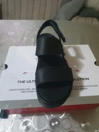 Sandalias negras con diseño moderno. - Tiras anchas. - Suela plataforma. - Cierre de velcro.