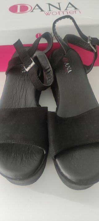 Sandalias negras de tacón con plataforma, muy cómodas ya que la suela está acolchada. Tacón 9 cm y plataforma 3 cm.